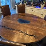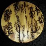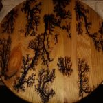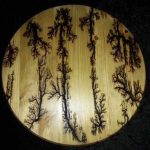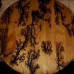 These are the original standard burned Lazy Susans without any particular design but are beautiful just as they are. They come in two sizes 12 inch and 15 inch, 18 inch made upon request. The burns can be colored as well with several different colors available upon request.